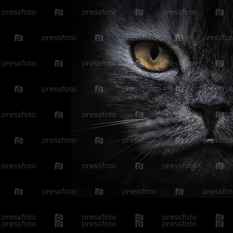 Темная морда серого кота крупным планом. передний план
