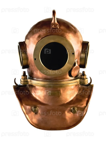 Старый медный водолазный шлем на белом фоне