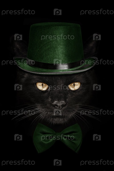 Кот с темной мордой в зеленой шляпе и галстуке-бабочке