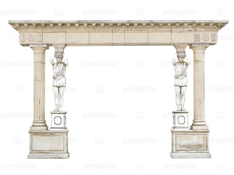 Античная каменная арка с атлантами в виде колонн, изолированных на белом фоне