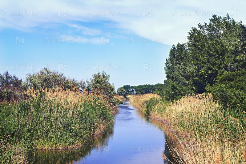 Река с камышами на берегу