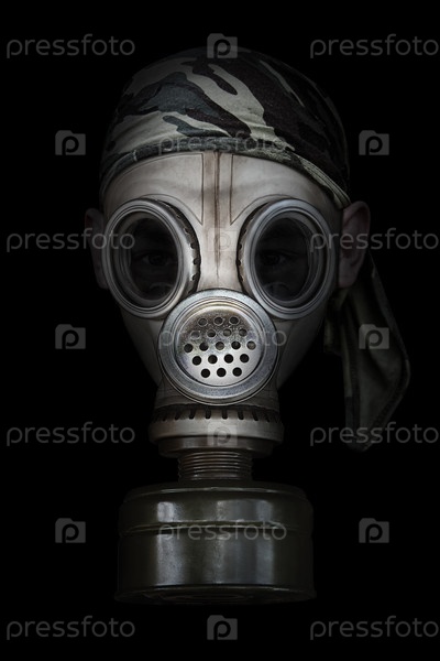 Старый противогаз на черном фоне