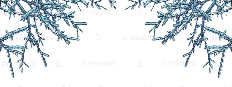 Рамка из ледяных ветвей деревьев, изолированных на белом фоне