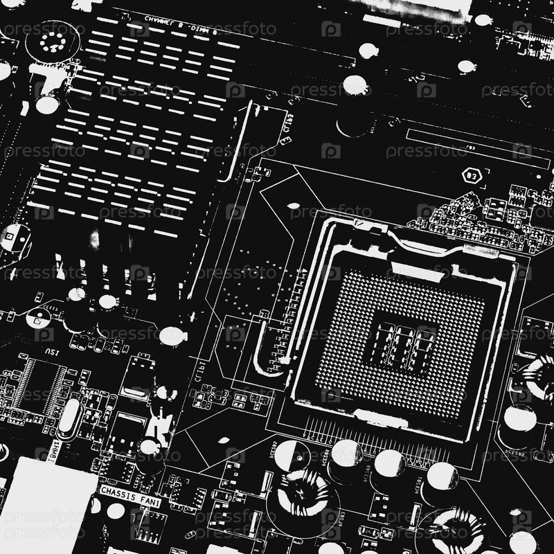 Черно-белая концепция материнской платы с сокетом для центрального процессора