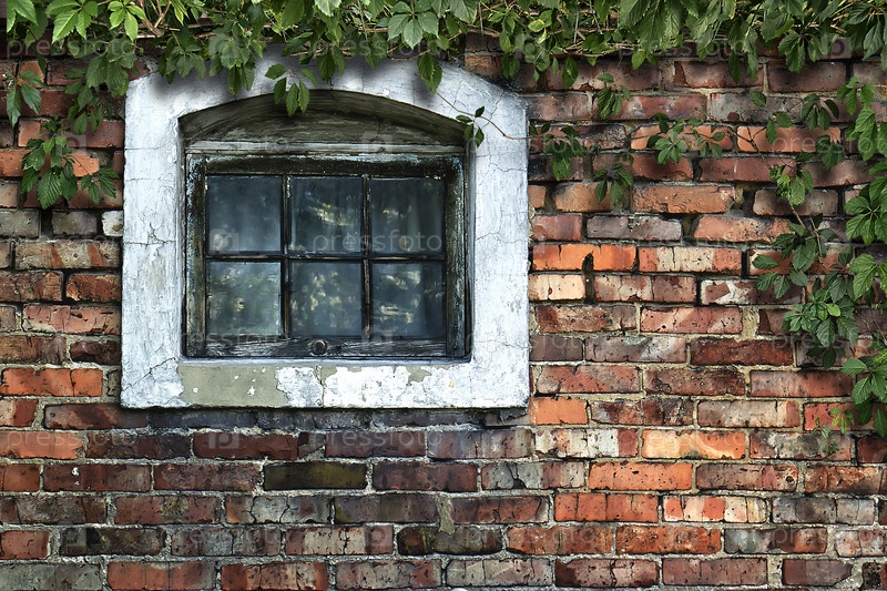 Старая кирпичная стена с деревянным окном на заднем плане в стиле гранж
