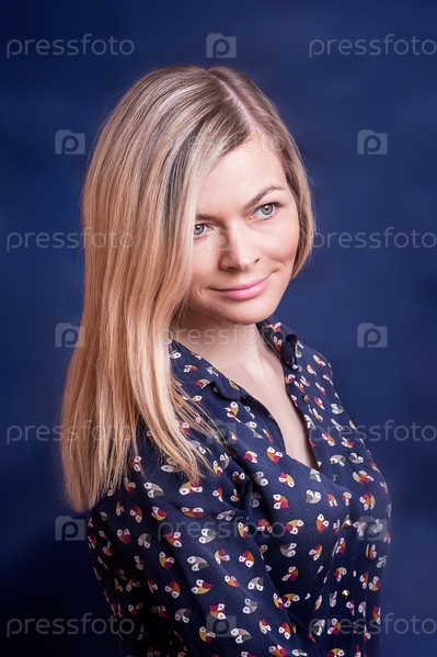 Блондинка на синем фоне