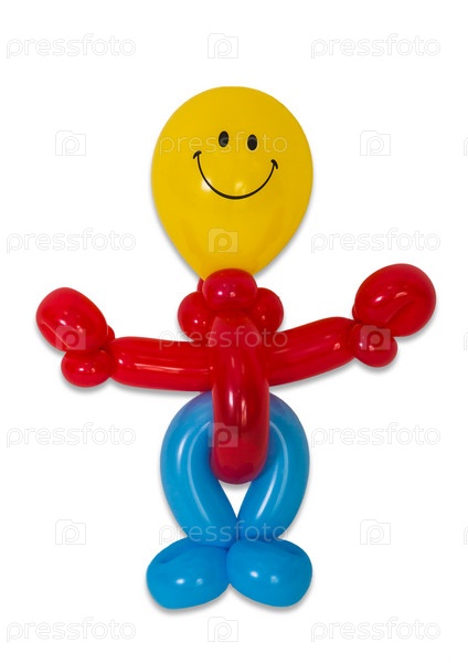 Воздушные шары, скрученные в человеческую фигуру с улыбкой, изолированные на белом фоне