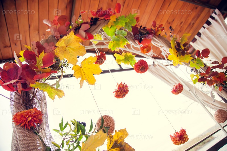 Осенний свадебный декор арки в деревенском стиле для свадебной церемонии на берегу реки