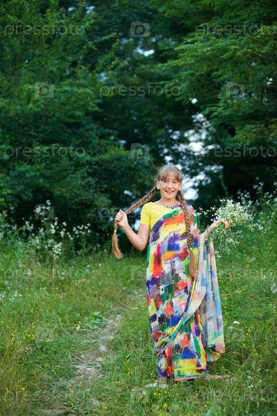 Девушка европейской внешности в традиционном индийском сари