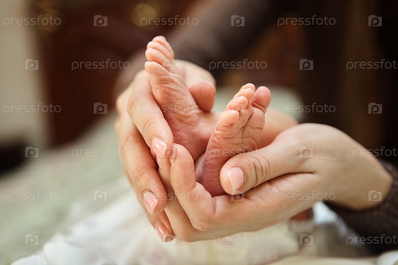 Рука матери держит ноги своего новорожденного ребенка