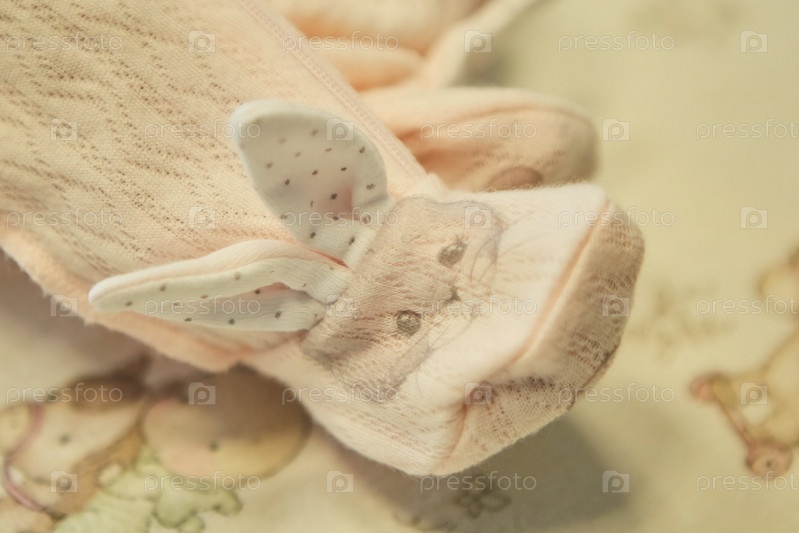 Маленькие ножки новорожденного в носочках. Понятие материнства и детства