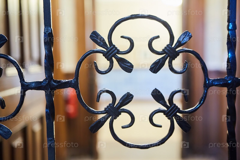 Древняя решетка в старинном здании. Кованые элементы и декор