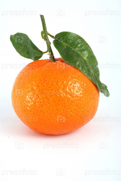 Мандарин с зелеными листьями