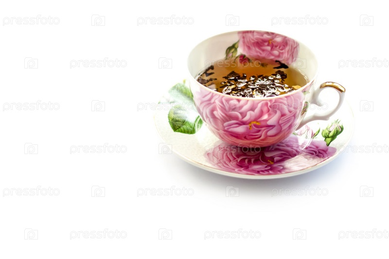 Чашка чая. Большие листья чая в чашке