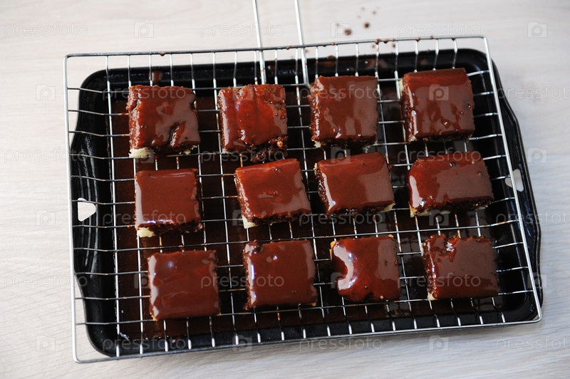 Десертный ламингтон с шоколадной глазурью на противне с грилем