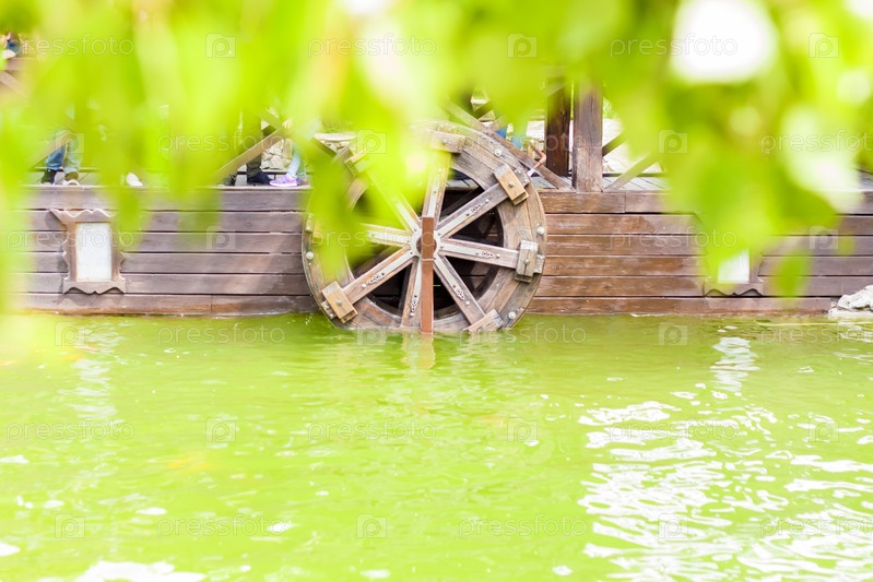 Пруд, где находится деревянное колесо водяной мельницы. Туризм, отдых и путешествия