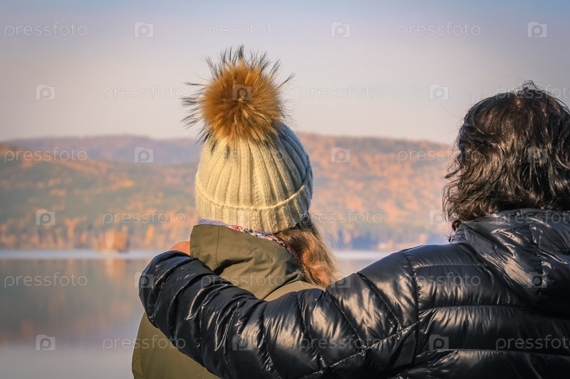 Молодая пара смотрит вдаль на противоположный берег озера