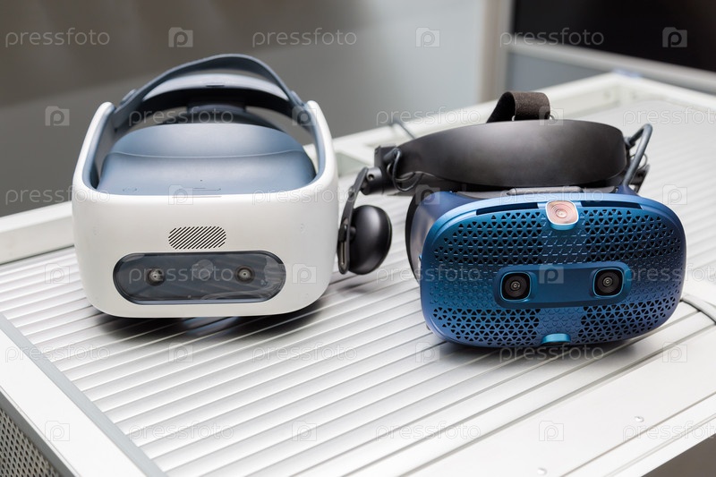 Шлем виртуальной реальности. VR-гарнитура. 3D визуализация в очках виртуальной реальности