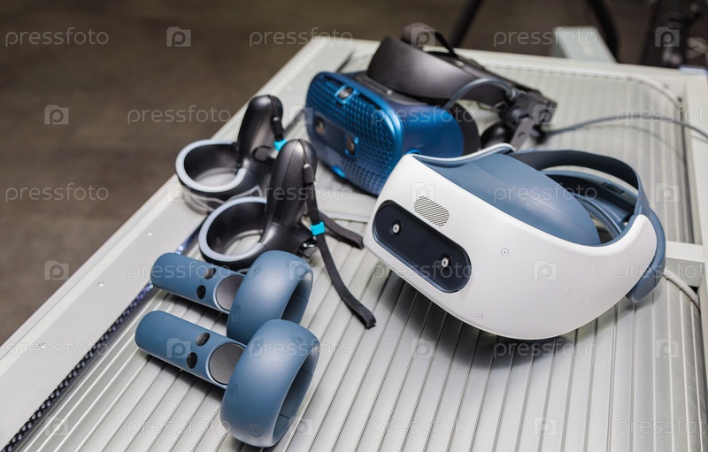 Шлем виртуальной реальности. VR-гарнитура. 3D визуализация в очках виртуальной реальности