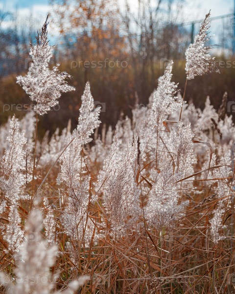 Колоски пушистого растения в светлых пастельных тонах качаются на ветру