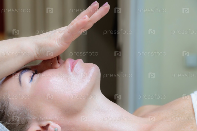 Девушке делают массаж лица и шеи в салоне красоты
