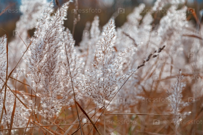 Колоски пушистого растения в светлых пастельных тонах качаются на ветру