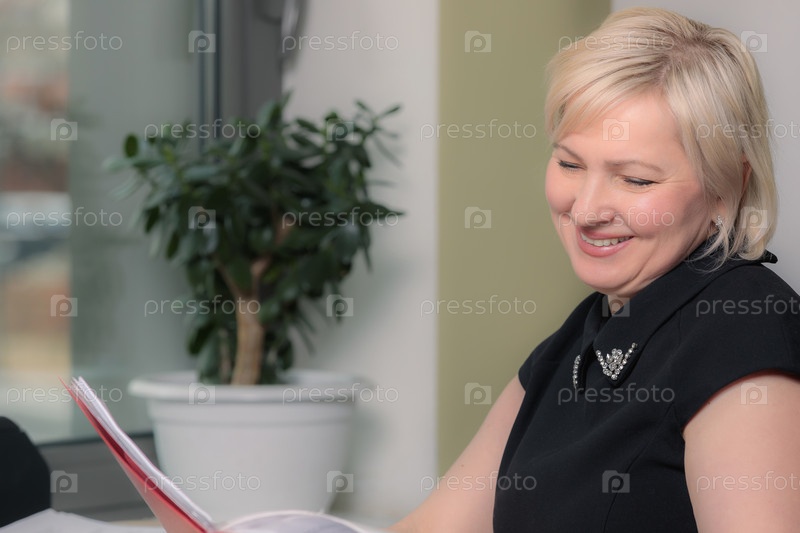 Женщина-директор, работающая в офисе, сидит за столом, анализирует бизнес-статистику, проверяет документы