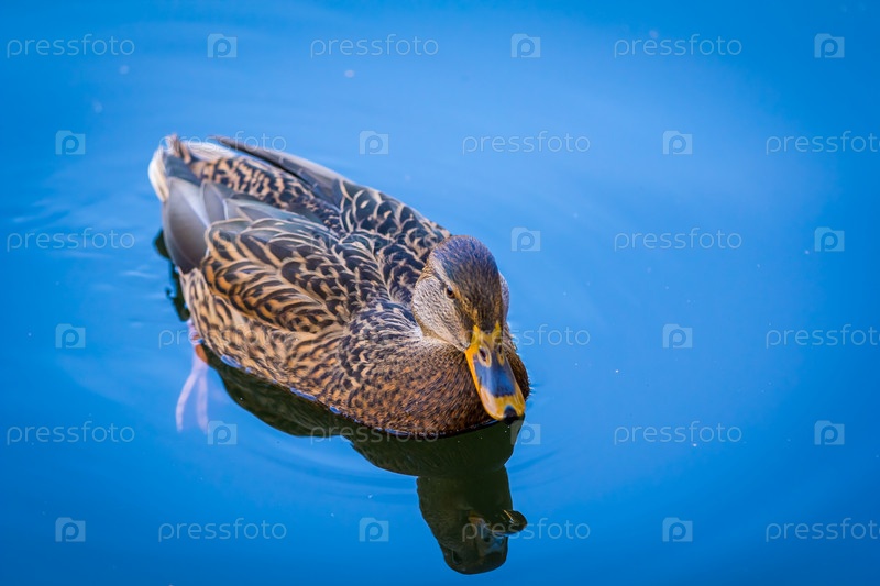 Одинокая утка плавает в пруду осенью