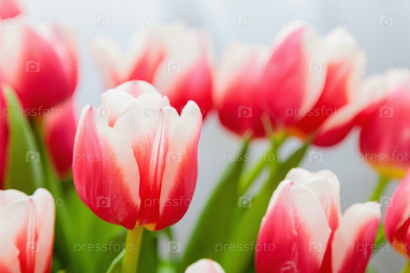 Красный и белый бутон цветущего тюльпана. макросъемка внутри