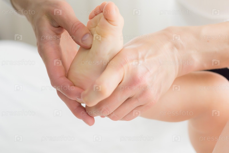Мама делает ребенку массаж ног и ступней. Крупный план