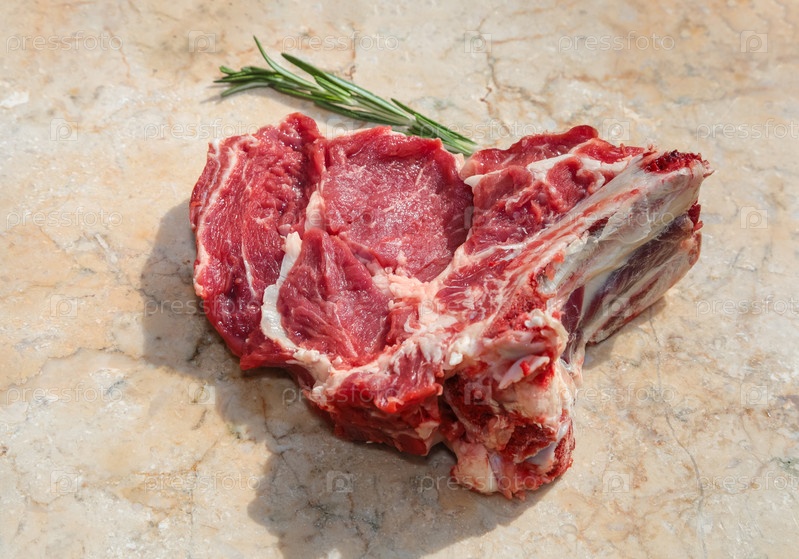 Свежий кусок говядины с ребрышками, готовый к жарке