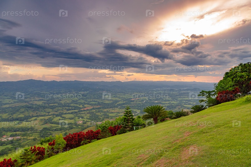 Вид с большой горы на долину с озером в Доминиканской Республике