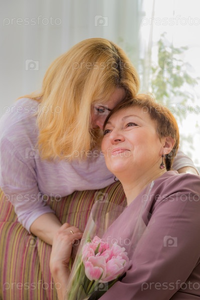 Девушка поздравляет маму с праздником