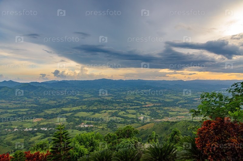 Вид с большой горы на долину с озером в Доминиканской Республике