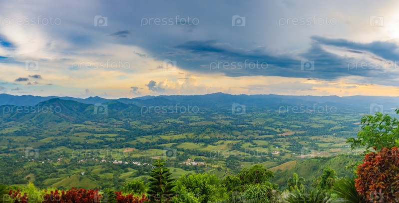 Вид с большой горы на долину с озером в Доминиканской Республике