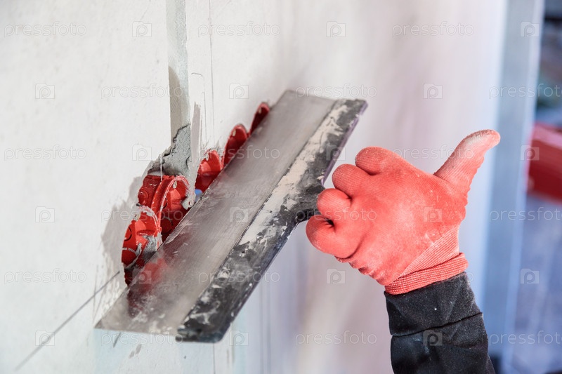 Электрик заштукатурит отверстия и каналы для розеток и проводов