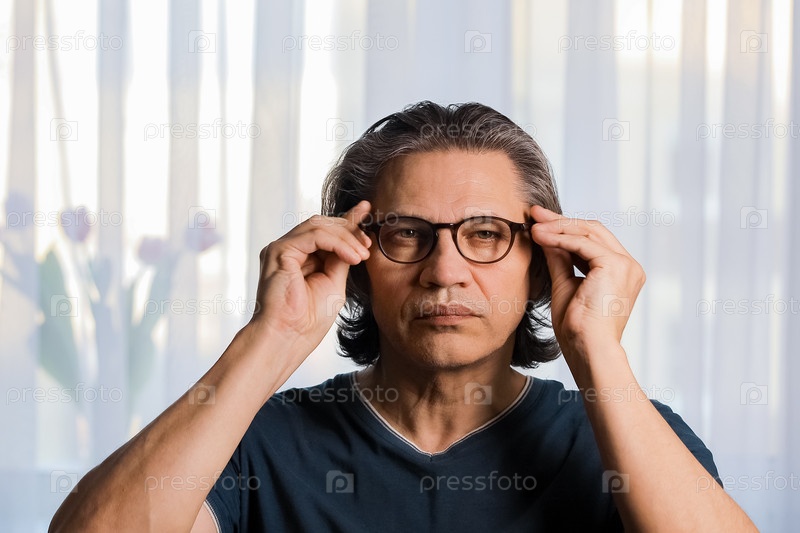 Взрослый мужчина надевает очки для зрения