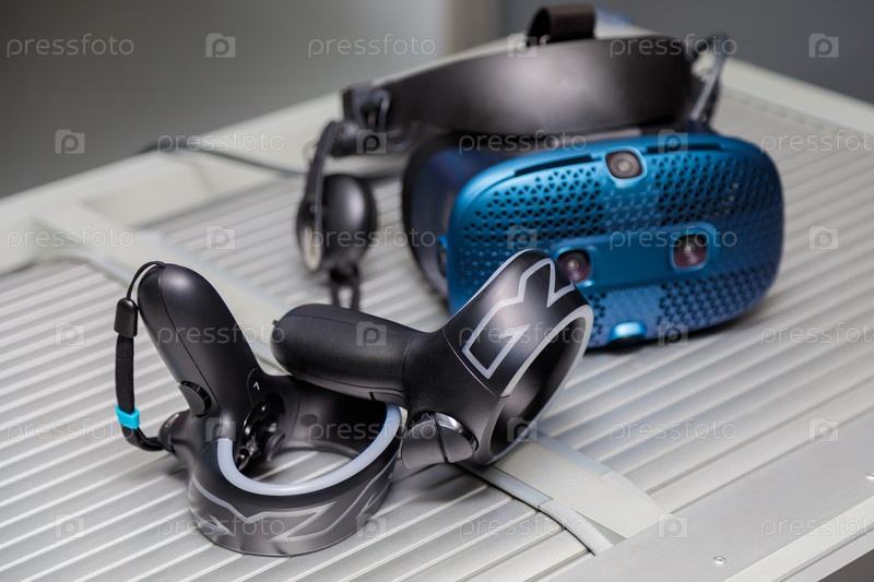 Шлем виртуальной реальности. VR-гарнитура. 3D визуализация в очках виртуальной реальности