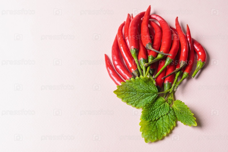 Слайд красного перца чили с зелеными листьями на светлом фоне