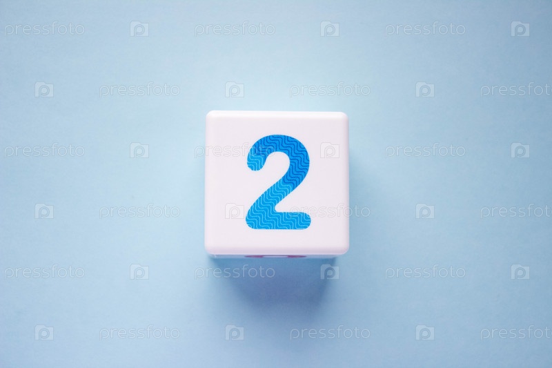 Фотография крупным планом белого пластикового куба с синей цифрой 2 на синем фоне. Объект в центре фотографии