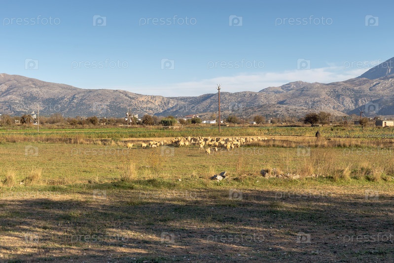 Стадо овец, пасущихся в горной сельскохозяйственной местности