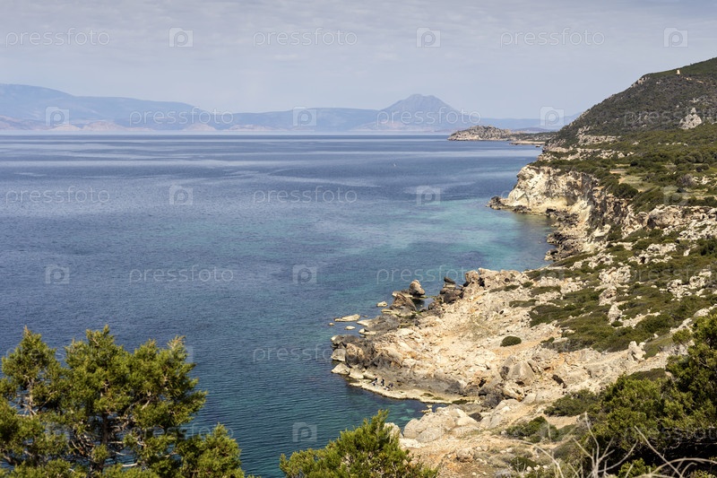 Панорамный вид на горы и море (префектура Коринфия, Греция)