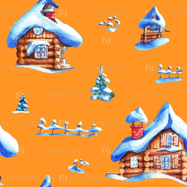 Зимний пейзаж. Бесшовный узор. Акварель