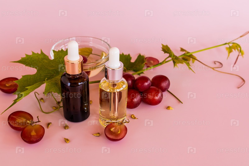 Косметическое органическое средство по уходу за кожей лица и тела на основе виноградных косточек в двух стеклянных флаконах с дозатором. содержание витаминов и минералов