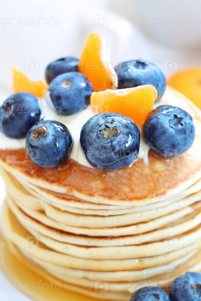 Панкейки с голубикой на белом фоне