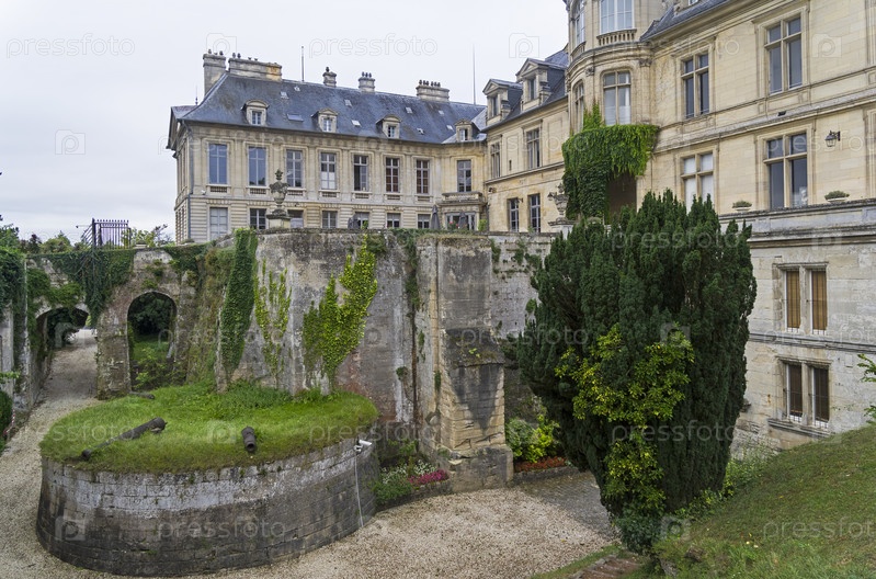 Декоративный ров у замка-крепости в архитектурном ансамбле Grand Mello, Франция