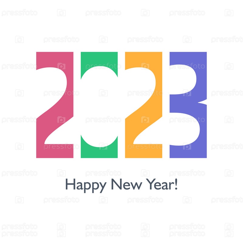 2023 новый год, яркая разноцветная надпись с приветствием. Вектор
