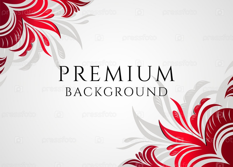 Белый фон с изящными стилизованными красными цветами по углам, шаблон для обложек, открыток, поздравлений, свадебных приглашений, рекламы в моде, косметологии, флористики. Вектор