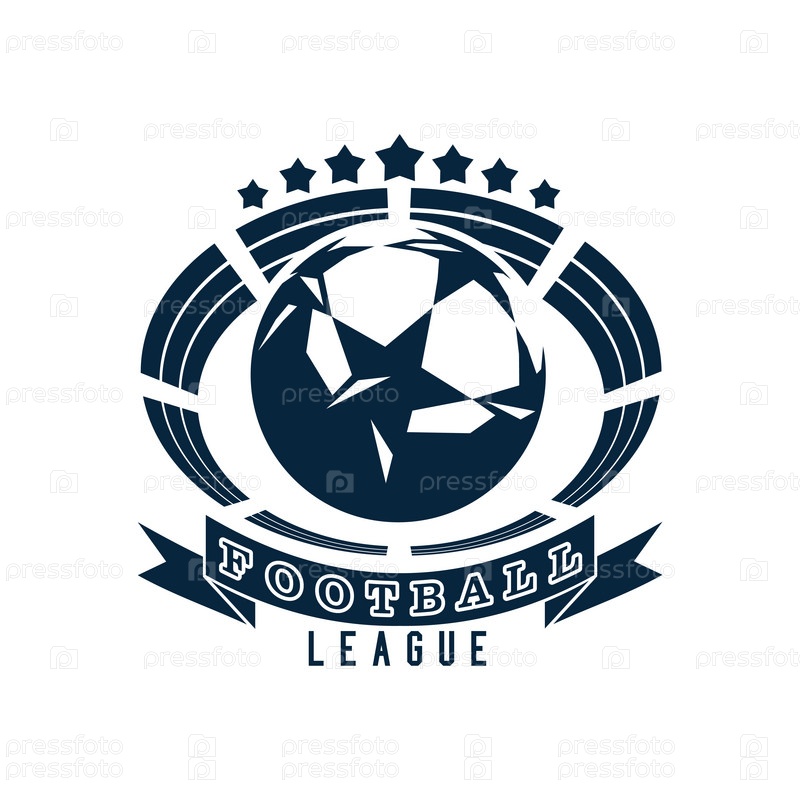 Футбольная эмблема с мячом и спортивной ареной, изолированное монохромное изображение. Векторная иллюстрация