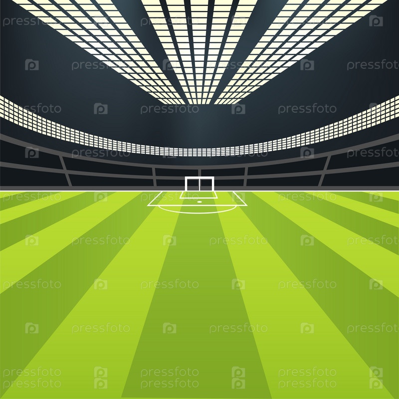 Пустое футбольное поле, цветное изображение бокового вида из перспективы. Векторная иллюстрация